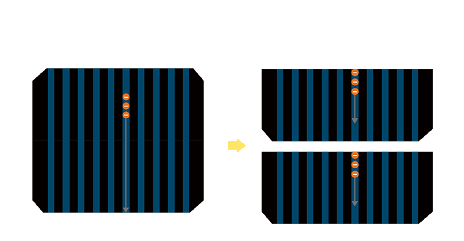 - 电池使用多条铜导线 (Copper wire) 于电池片上形成较短的电流路径,提高电流收集效率,采用圆形设计的铜导线较传统扁平式的铜焊带 (Ribbon),可增加入射至电池的光线量。